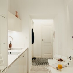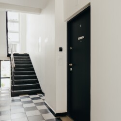 Mieszkanie znajduje się na wysokim parterze odrestaurowanej kamienicy z lat przedwojennych, w sąsiedztwie pięknego, zielonego parku, rzeki Wisły, hali Torwar i Łazienek Królewskich. Okna mieszkania wychodzą na dziedziniec, co zapewnia ciszę i spokój.