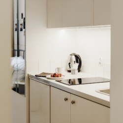 Bunga Apartament składa się z przestronnej otwartej przestrzeni, w której znajduje się korytarz z wieszakami na ubrania, w pełni wyposażony aneks kuchenny z częścią jadalną, wyposażoną w składany stół i dwa krzesła. W obszarze relaksacyjnym znajduje się podwójne łóżko o szerokości 140 cm, smart TV oraz wnęka szafowa. Łazienka wyposażona jest w prysznic i WC.