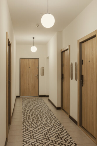 Apartament jest doskonale usytuowany w budynku oficyny, zapewniając spokój i ciszę.